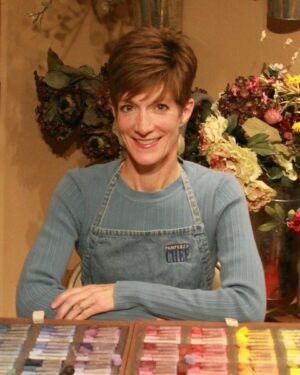 The pastel medium is appealing to Sarah because of the immediacy of the color and the ability to build layers of colors. Her selection of subjects is often based on a desire to find and replicate the way light bounces around a scene or setup. For that reason, glass, china, and other reflective surfaces are often featured in her still life paintings. Flowers are a favorite subject, whether as part of a still life or as found in nature. Sarah enjoys the challenge of capturing a strong sense of light and creating the illusion of three dimensions on a two-dimensional surface. With each painting, Sarah hopes to inspire an emotional reaction of joy or happiness in the viewer.