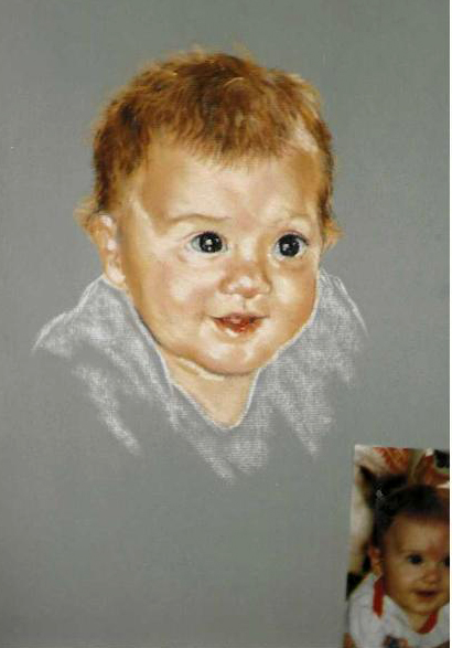 This is an example of a simple head and shoulders portrait of an infant created from client's photograph.