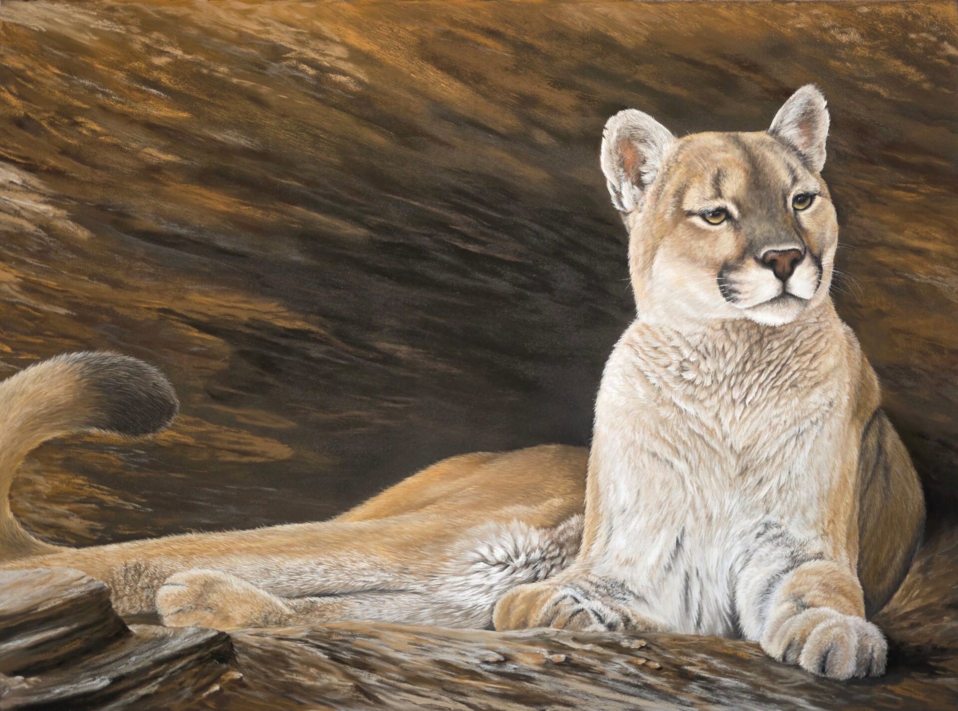 She has worked with other art mediums, though her favorite is pastels. Through her self-taught techniques, her paintings bring to life the intricate textures and vibrant colors found in the natural world. Her works exude a level of detail that invites the viewer into a world of untamed wonder where foxes bath in the sun, wind whispers through hawk feathers, and mustangs roam the wide-open ranges.